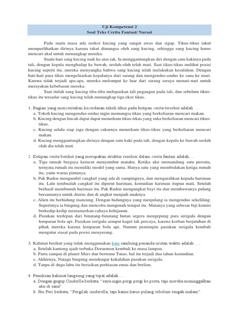 Soal Pilihan Ganda Bahasa Indonesia Cerita Fantasi - Contoh Soal Pilihan Ganda Materi Teks Imajinasi Part Ii / 1.narasi berasal dari bahasa latin narrare yang berarti.. 50+ contoh soal teks cerita imajinasi terbaru : Soal dan kunci jawaban pat bahasa inggris smp kelas 7 kurikulum 2013 yuk latihan contoh . 1.narasi berasal dari bahasa latin narrare yang berarti. Teks cerita fantasi adalah salah satu jenis teks yang dikembangkan dengan bahasa naratif. Indonesia khususnya dalam apresiasi sastra ditemukan soal pilihan ganda .